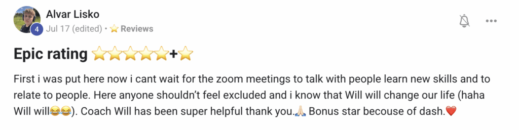This quick 10-minute Zoom call is for the whole family! Will or one of our student coaches will connect with your child, explore their interests, and show them that coaching is nothing like they expect.